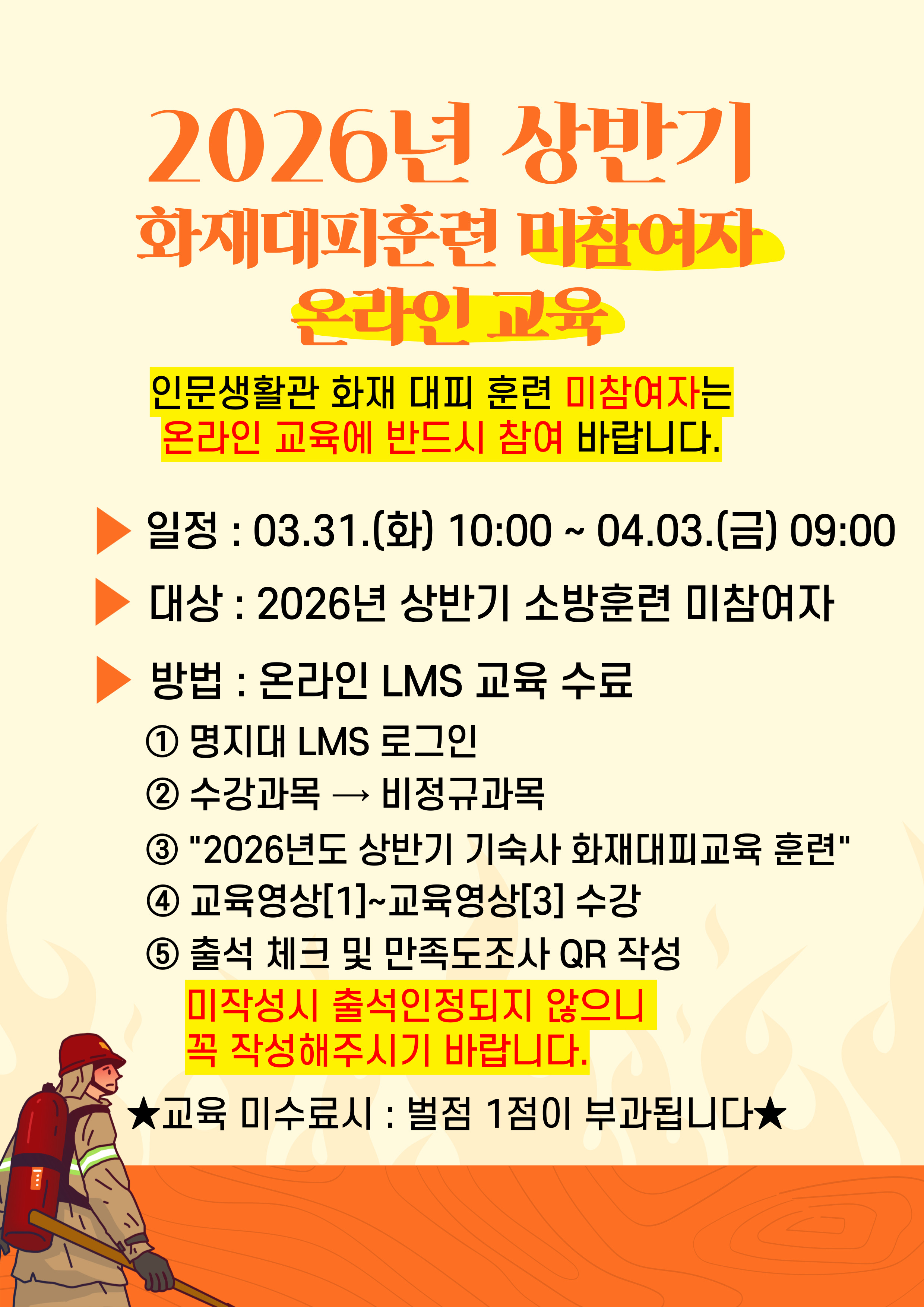 [인문] 2026년 상반기 화재대피훈련 미참여자 대상 LMS 교육 안내