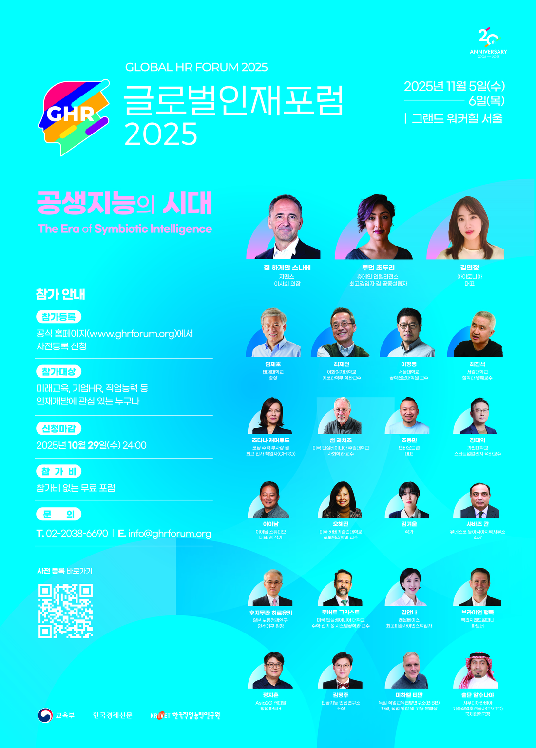 올해 20번째로 개최되는 「글로벌인재포럼 2025」를 다음과 같이 알려드리니, 관심있는 분들은 꼭 온라인 사전 등록하셔서 참여하시기 바랍니다(현장신청 불가)