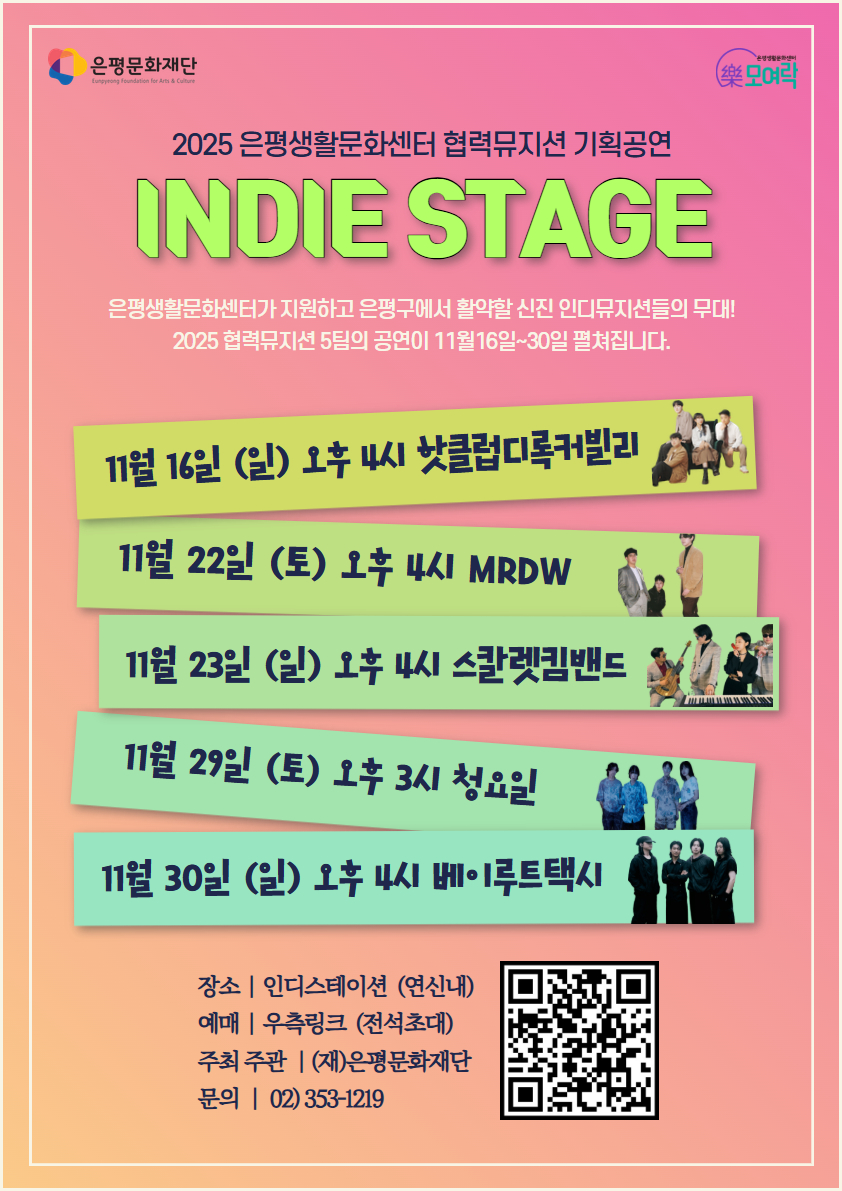 2025 은평생활문화센터 협력뮤지션 단독공연 <INDIE STAGE> 안내