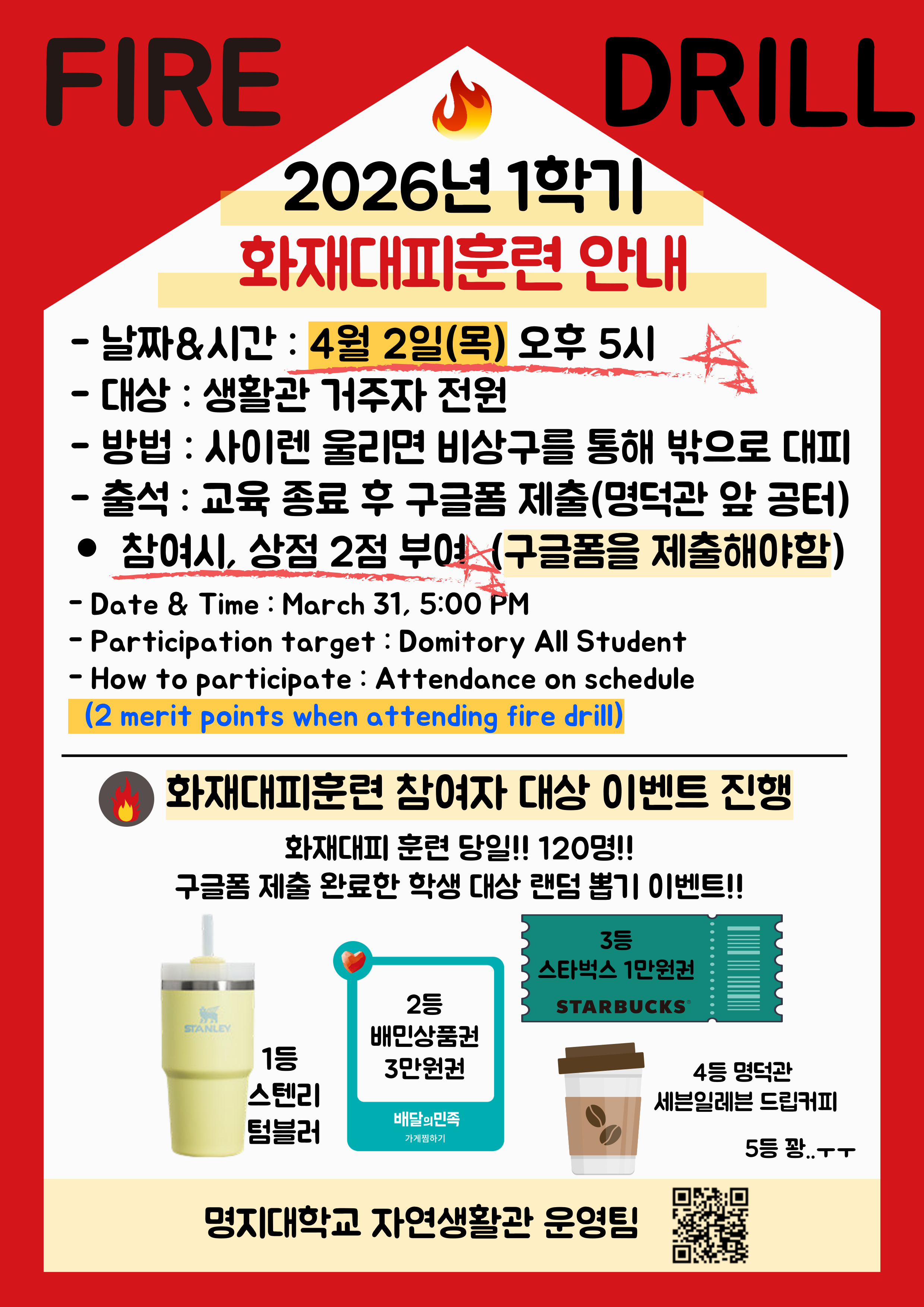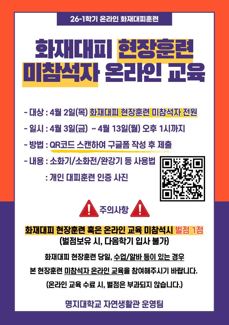 [자연] 2026년 상반기 화재대피훈련 실시 안내 (날짜 변경)