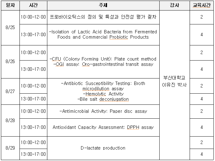 1. 교육대상: 프로바이오틱스 분야에 관심 있는 학부생