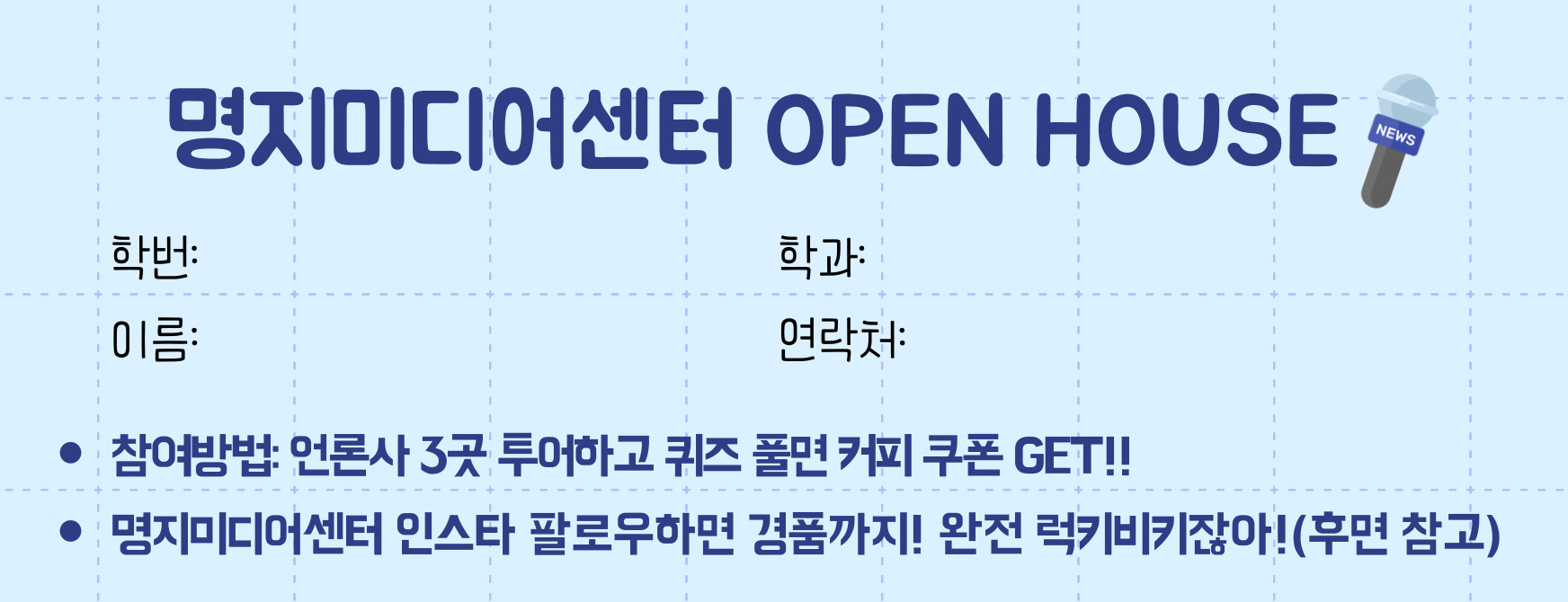 행사명: 2026학년도 제1회 명지미디어센터 OPEN HOUSE 행사 안내