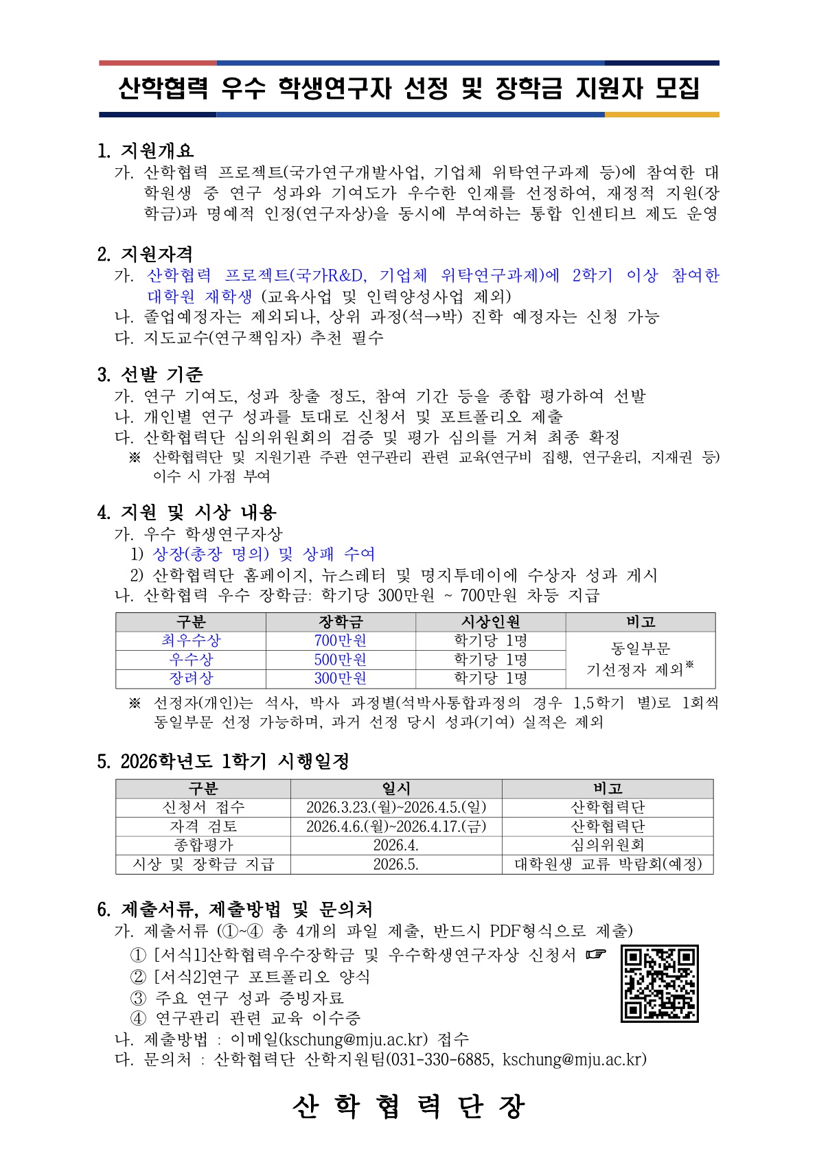 산학협력 우수 학생연구자 선정 및 장학금 지원자 모집 공고.pdf