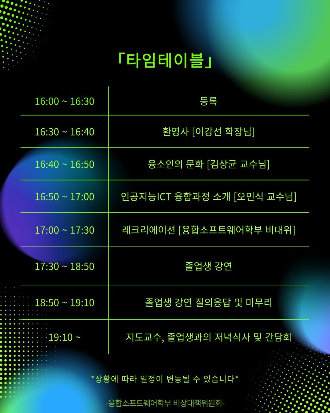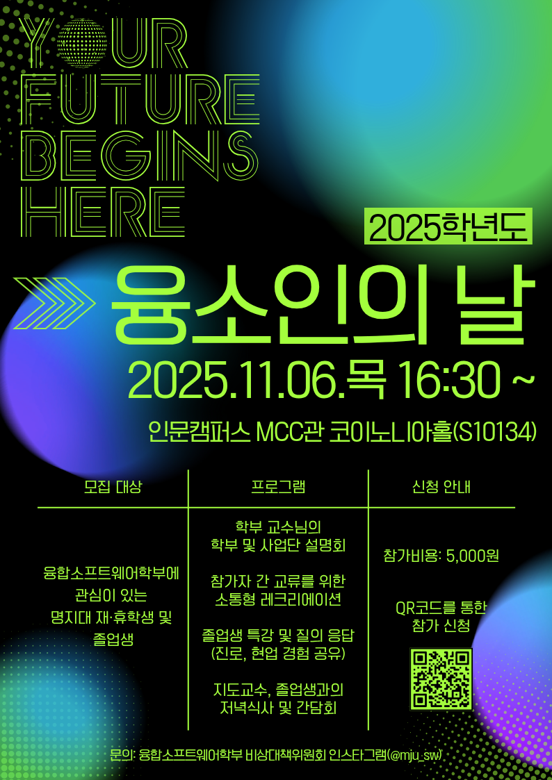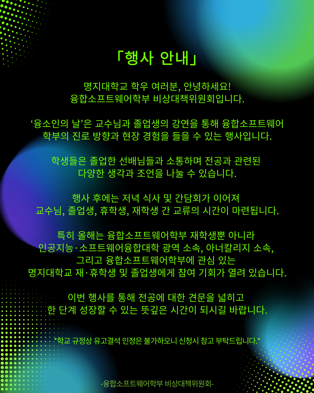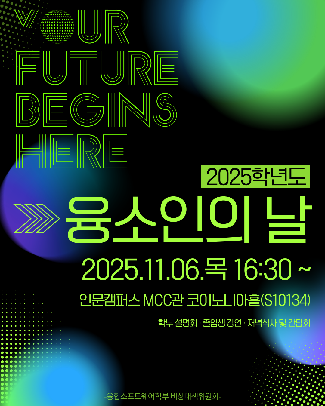 융합소프트웨어학부 학생들을 대상으로 '융소인의 날' 행사를 진행하오니, 관심있는 분들의 많은 참여 바랍니다.