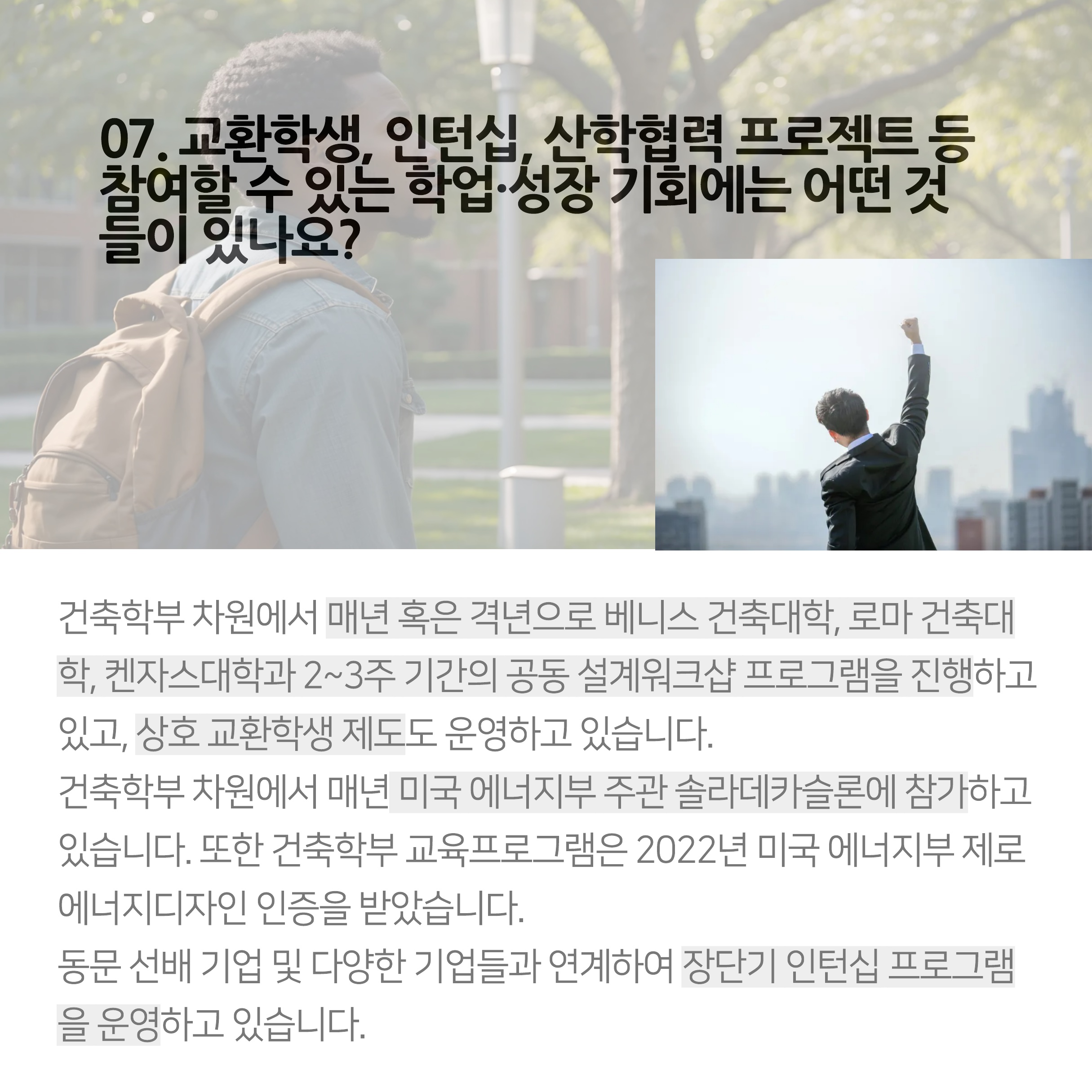 또한 5년제 건축학교육 프로그램을 공유한다는게 큰 특징이네요.