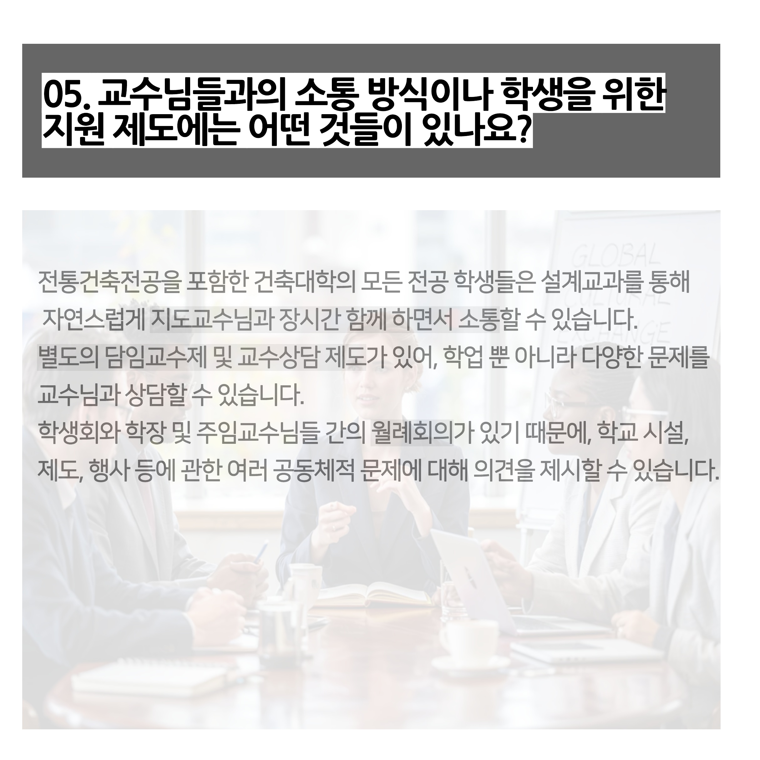 교수님과의 상담이 가능하니 전통건축학 학생들은 자유롭게 소통할 수 있다는 장점이 있네요.