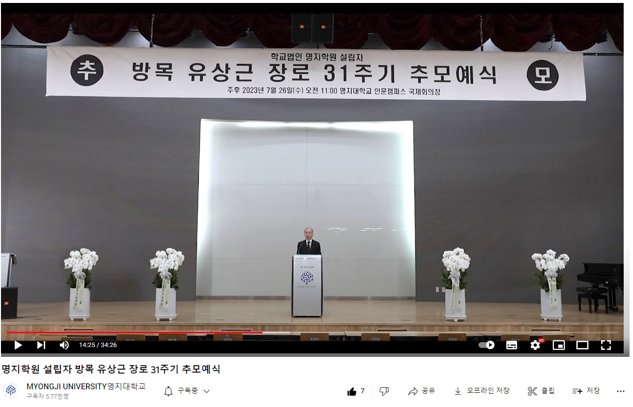 학교법인 명지학원 설립자인 방목(邦牧) 유상근(兪尙根) 장로의 31주기 추모예식이 7월 26일(수) 오전 11시에 온라인으로 열렸다.