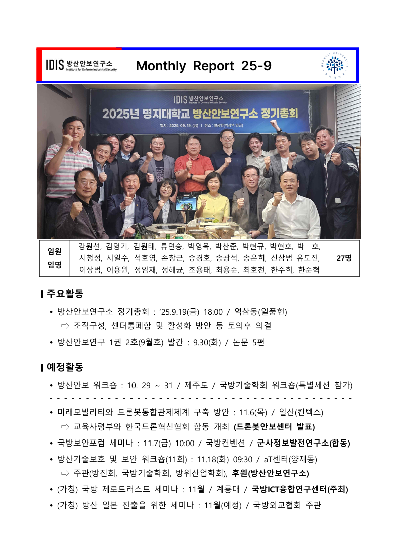 fnctId=bbs,fnctNo=1251 방산안보연구소 월간 소식 (9월호) 작성일2025.10.01 수정일2025.10.01 작성자 관*자 조회수50 방산안보연구소 월간 소식 (9월호) 첨부파일 첨부파일이(가) 없습니다.
